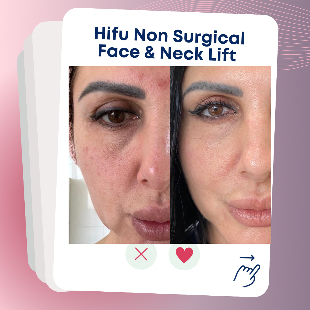 HIFU (High-Intensity Focused Ultrasound) is a non-surgical treatment that works deep within the skin to lift, tighten, and firm by stimulating fresh collagen production.